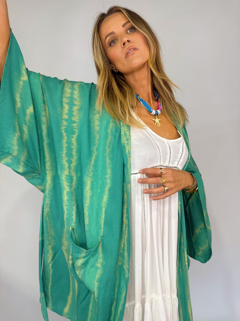 Each Kimono is a one-of-a-kind creation. Hand-dyed by our team of artisans using traditional techniques that celebrate slow craftsmanship and natural beauty.