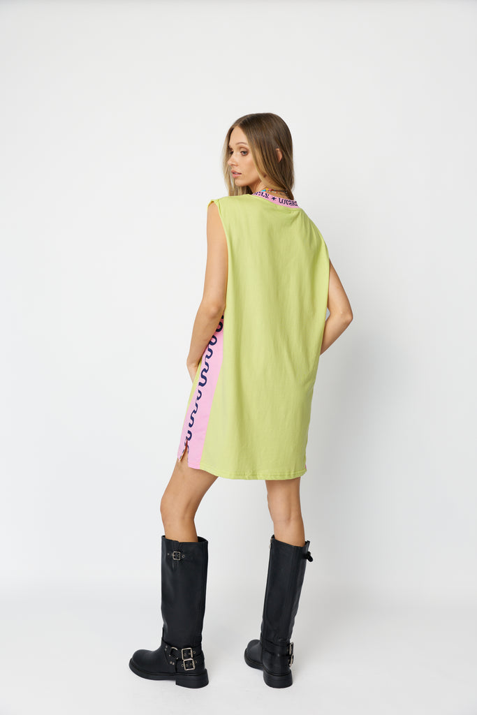 Wave Racer Tank Dress ~ Chartreuse