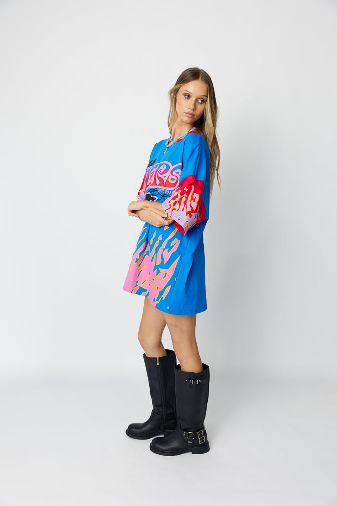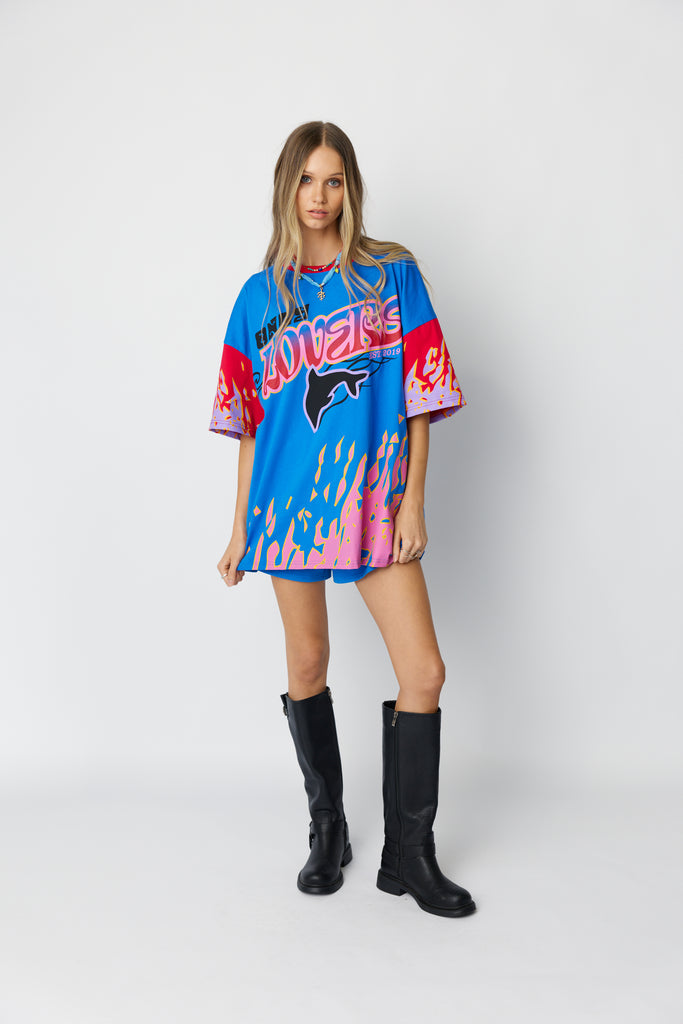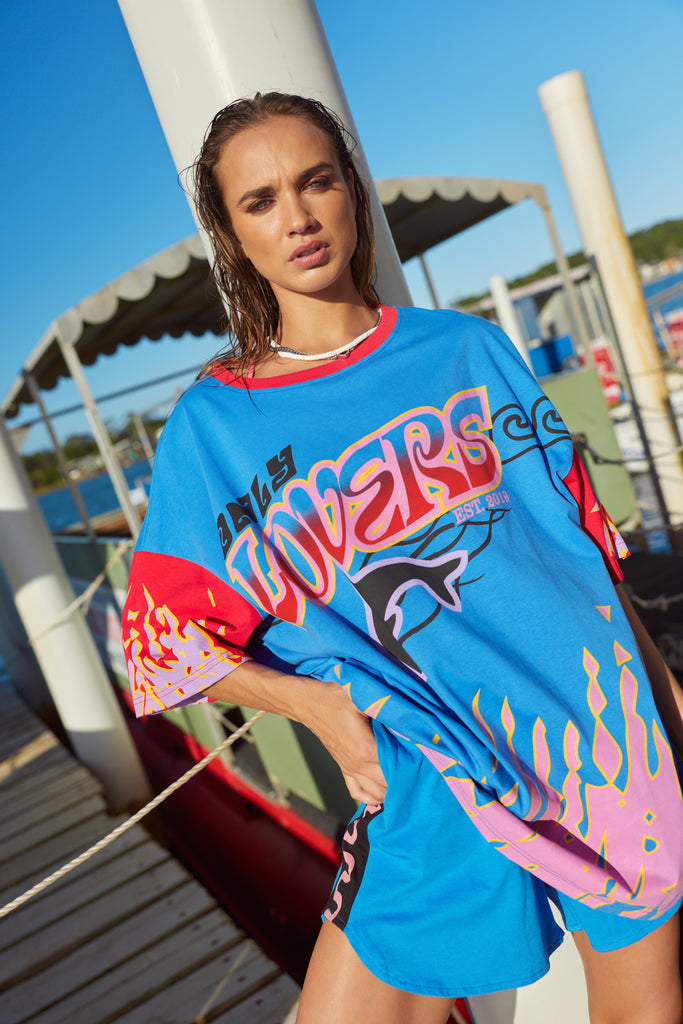 Born from salt water and sun glare, the Wave Racer Tee is cut in our signature oversized fit and made from soft 100% cotton, bringing sun-bleached colour hits and 90s nostalgia into an easy, throw-on piece with main character energy.